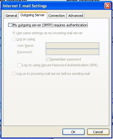 uncheck smtp auth checkbox