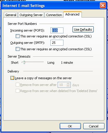Advanced Tab, match these settings (Uncheck leave mail on server) (Use defaults should fix these)